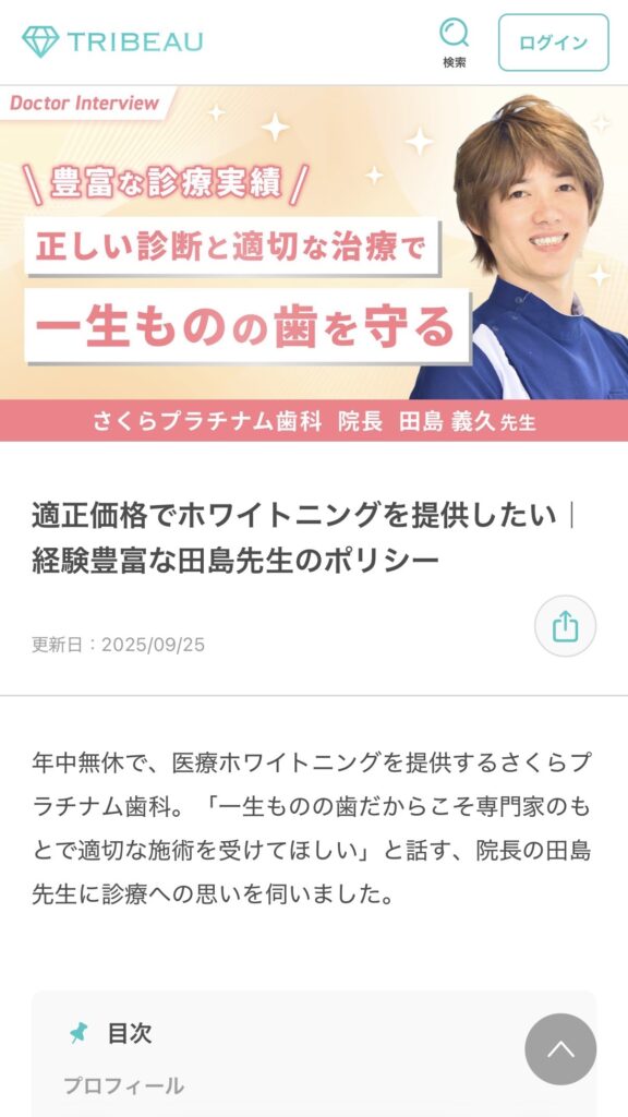 【メディア掲載】適正価格で提供する“本当に白くなるホワイトニング”。院長田島のインタビューをトリビュー様に掲載頂きました!
