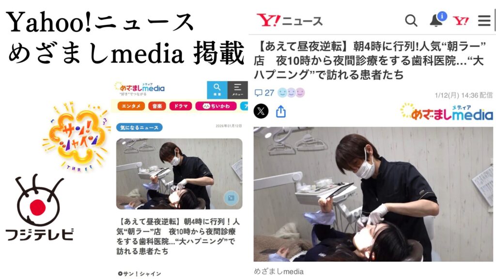 この度、さくらプラチナム歯科(渋谷)がフジテレビ「サンシャイン」で紹介された内容が、Yahoo!ニュースおよびめざましmediaにも掲載されました。