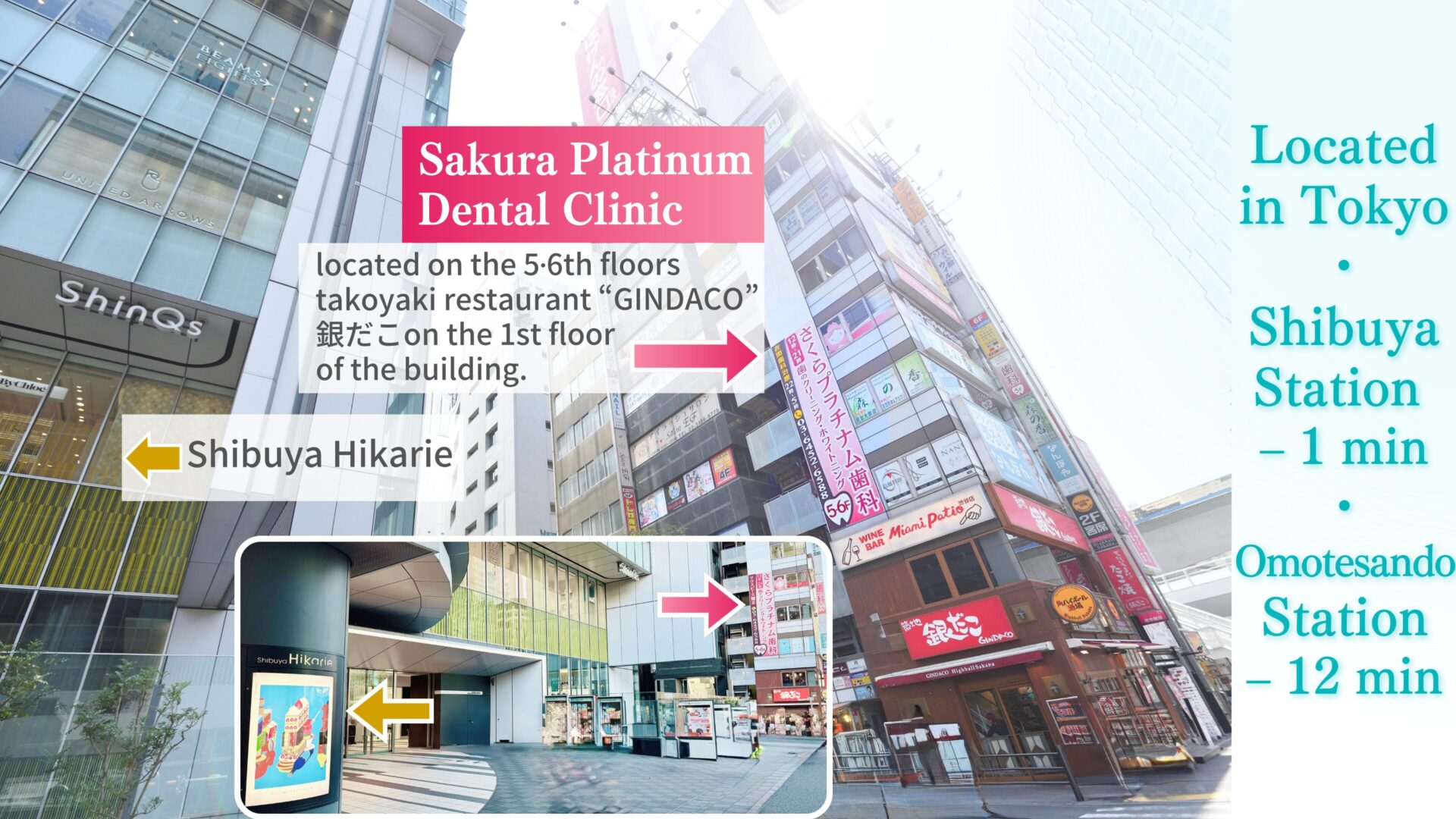 Sakura Platinum Dental Clinic, located just 1 minute from JR Shibuya Station in central Tokyo.