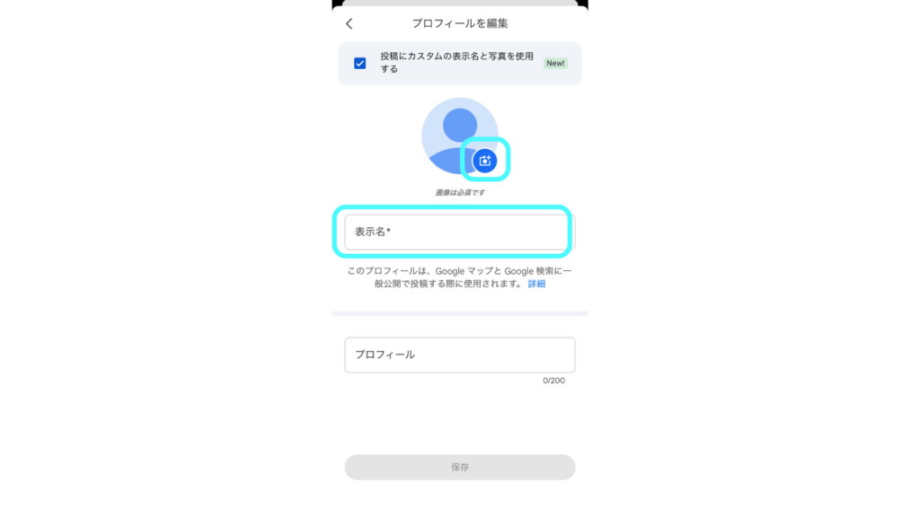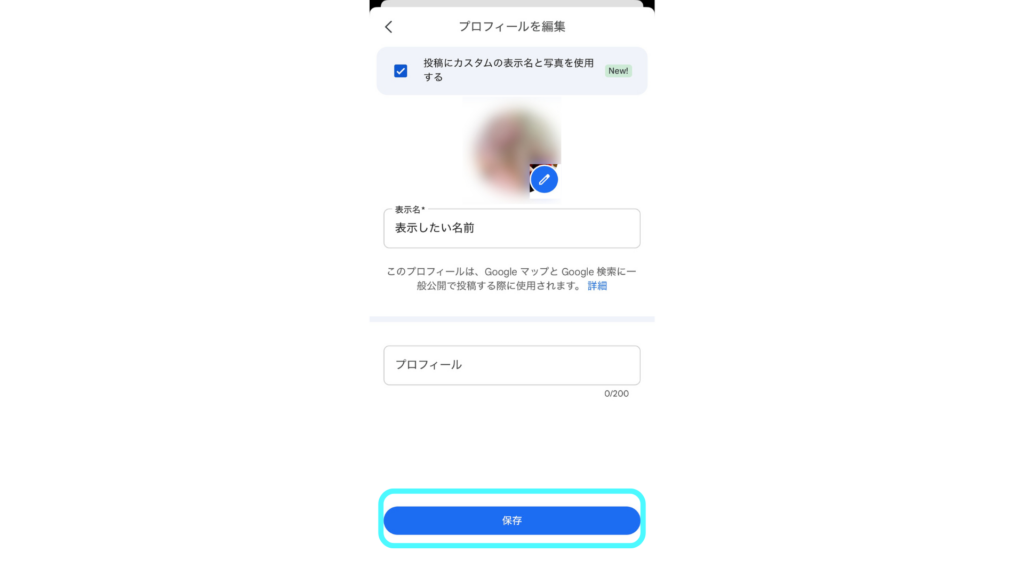 画像を表示名が希望のものになったら、「保存」ボタンをタップして保存