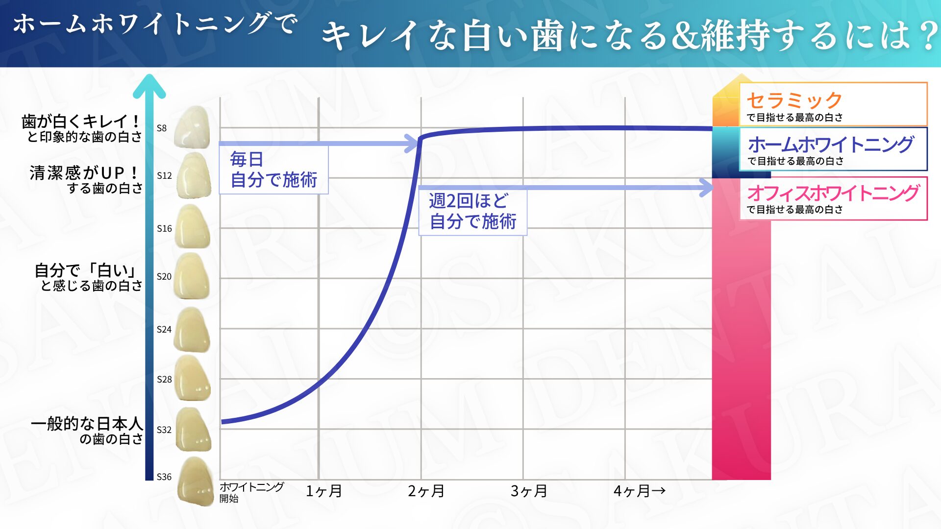 開始後、望む白さになるまでに、1〜2ヶ月ほど時間がかかります。