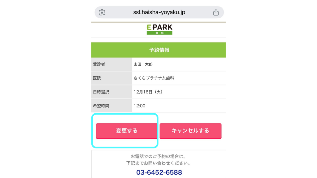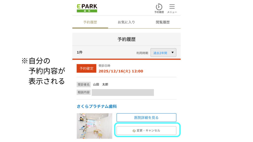 件名:【EPARK歯科】さくらプラチナム歯科 受付依頼変更をいたしました。