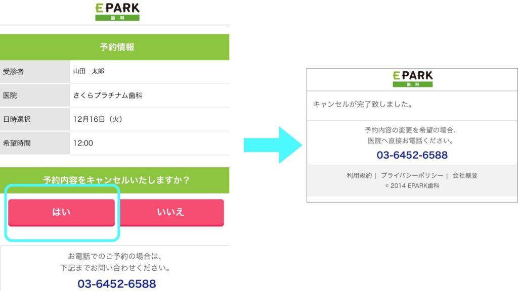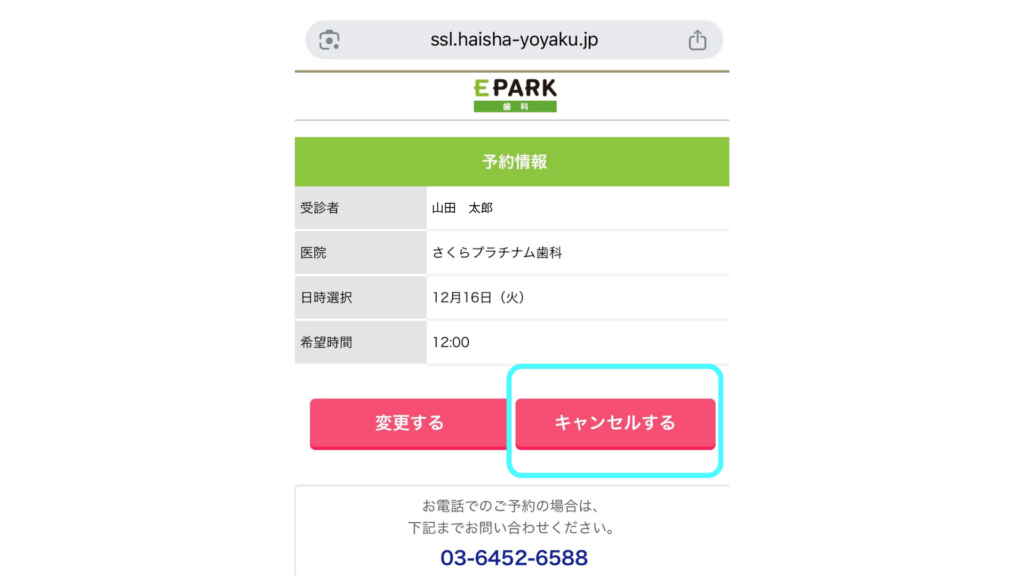 ①EPARK歯科マイページからお手続き ←こちらがオススメ!