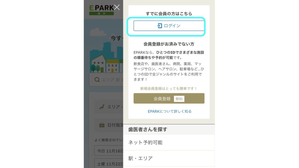 ・EPARK歯科へログイン